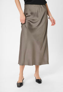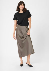 Dieser Damen-Maxi-Rock bietet eine gerade Silhouette, bequemen elastischen Bund und eine moderne, fliessende Optik. Vielseitig kombinierbar und angenehm zu tragen.
